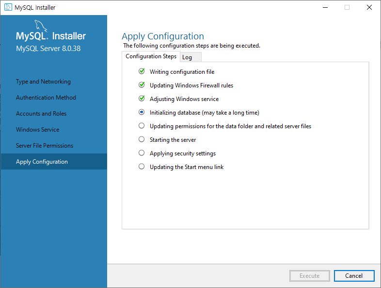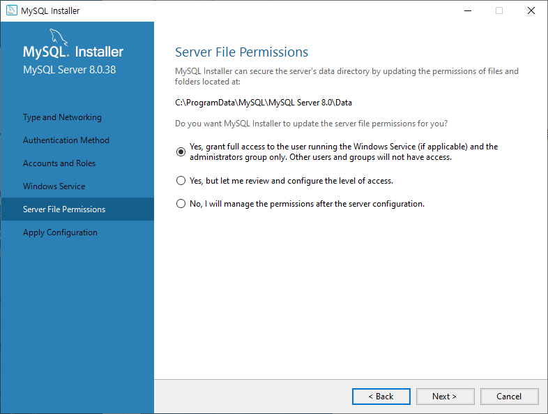 MySQL 서버를 윈도우즈의 서비스로 등록하기 위한 설정을 진행해야한다.