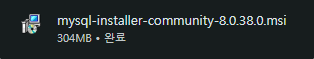 파일명은 (mysql-installer-community-8.0.38.0.msi)이다. 용량은 303.6M 정도 된다.