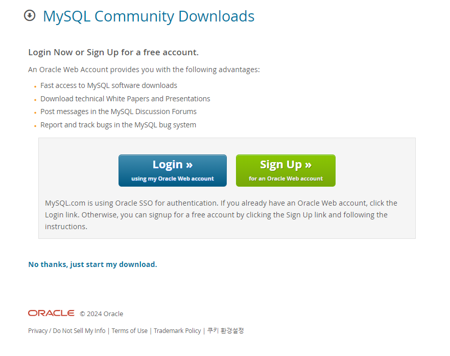 물론 Oracle Live SQL 같이 웹으로 실행할 수 있는 서비스도 제공하지만 필자는 웹서버와 연동하기 위해 MySQL을 설치하기로 했다.